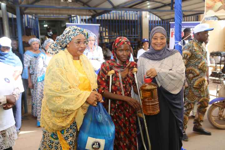 Dans le cadre de la célébration de la journée internationale de la Femme, le 8 mars, couplée au mois béni de ramadan, l’Amicale des Femmes Solidaires de la CANAM a décidé́ de venir au secours de trois catégories de personnes vulnérables que sont les veuves, les personnes vivant avec un handicap et les indigents par une donation de 1000 kits de vivres composés de riz, de sucre, de lait, du thé et d’huile. La cérémonie a été présidée par le ministre de la Santé et du Développement social, le médecin colonel Assa Badiallo TOURÉ, qui avait à ses côtés, les directeurs nationaux et généraux relevant du département de la Santé et du Développement Social.