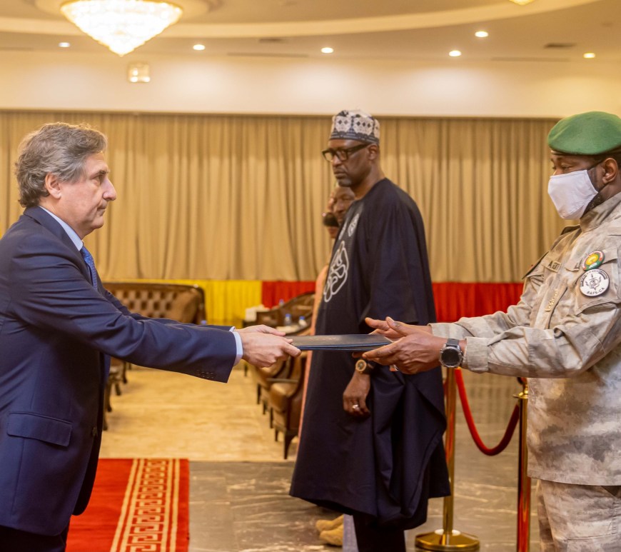Le jeudi 16 avril 2026, l’Ambassadeur de l’Union européenne au Mali, Alberto Cerezo, a eu l’honneur de présenter ses lettres de créance au Président de la Transition, le Général d’Armée Assimi Goïta. La cérémonie s’est déroulée au Palais de Koulouba, en présence du Ministre des Affaires étrangères et de la Coopération internationale et des membres du Cabinet du Président. Continuer de lire LETTRES DE CREANCE DE L’AMBASSADEUR DE L’UE AU MALI: Une étape importante dans les relations